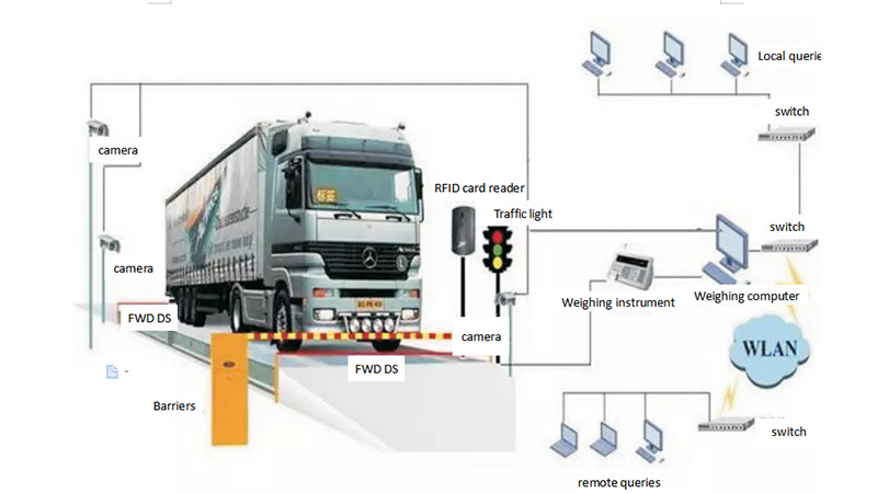 RFID intelligent weighting system consists of electronic truck scale, computer, printer, video surveillance, RFID card-reading system, traffic light , barrier and anti- remote cheat device. On the basis of existed electronic truck scale, the upgrade can be realized by added software and hardware into system. The system adopts standard WINDOWS interface, chinese language and simple operation make it convenient and easy to view and report, meaning that measuring can be conducted at any time, and the more accurate and reliable weighting data can improve work and economy efficiency. The system consists of two user-friendly operating patterns: manual operation and intelligent unmanned operation.