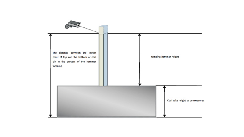 During temping, traditionally the altimetry of coking coal cake in temping station is inspected visually by experienced operator, when operator is concentrating on, the mean error is controlled at about 10cm; but when operating at night, operators cannot concentrate on fully, causing insufficient coal cake height, sometimes even less than half of the height , which severely affects the quality of coke. The system adopts the up-to-date digital imaging processing technology, installs several HD cameras on tamping station, collects the image of tamping hammer motor process in real-time, then calculates the height of coal coke by digital image analyzing and measures the height of tamping coal cake online.