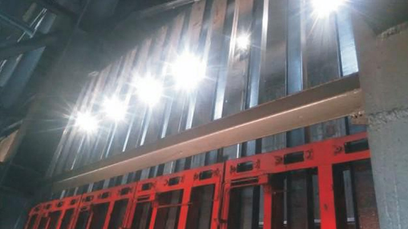在搗固過(guò)程中,搗固站煤餅高度的測(cè)量主要是操作人員憑經(jīng)驗(yàn)直接目測(cè),在操作人員注意力比較集中的情況下,一般高度誤差控制在10cm左右,但是在夜間操作時(shí),操作人員往往 注意力不集中,導(dǎo)致煤餅高度達(dá)不到要求,甚至有時(shí)煤餅高度不足一半,嚴(yán)重影響焦炭的質(zhì)量。本系統(tǒng)通過(guò)采用新數(shù)字圖像處理技術(shù),在搗固站安裝若 干個(gè)高清攝像頭,對(duì)搗固錘運(yùn)動(dòng)過(guò)程進(jìn)行實(shí)時(shí)圖像采集,經(jīng)過(guò)數(shù)字圖像分析處理后計(jì)算出煤餅高度,實(shí)現(xiàn)搗固焦煤餅高度的在線(xiàn)測(cè)量。該系統(tǒng)記錄每個(gè)碳化室的加煤量,為焦炭生產(chǎn)管理 層提供數(shù)據(jù)參考,也可以為焦?fàn)t智能加熱提供基礎(chǔ)數(shù)據(jù),同時(shí),煤餅高度還是實(shí)現(xiàn)搗固全自動(dòng)操作的重要前提。